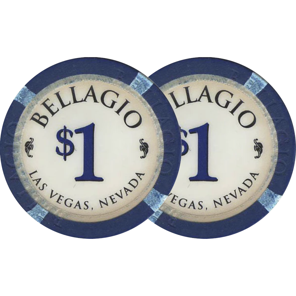 Bellagio с момента открытия ассоциируется с элитой Лас-Вегаса, поэтому даже фишка номиналом $1 несёт отпечаток класса и стиля, а её лаконичный и строгий дизайн подчёркивает имидж солидного и дорогого заведения.